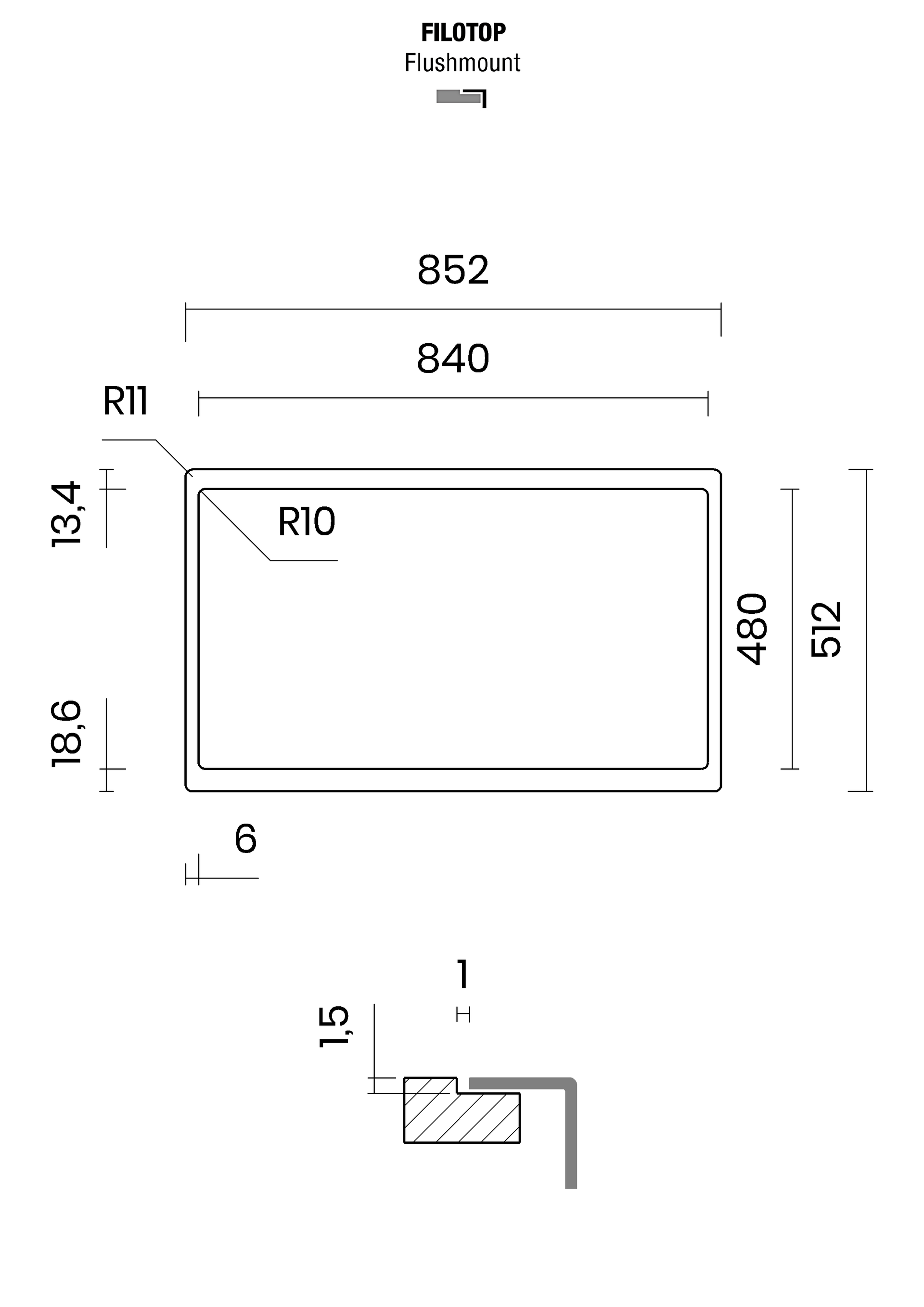 External dimensions 850x510 mm