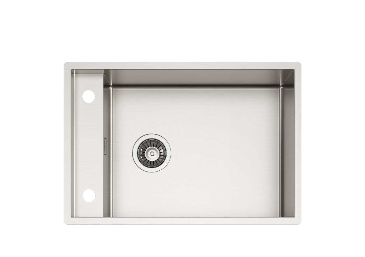 il lavello è già dotato del secondo foro Ø 35 mm adatto per installare miscelatori abbattibili con comando separato, oppure altri accessori. Su richiesta è disponibile il tappo in Acciaio Inox per la chiusura del secondo foro.
